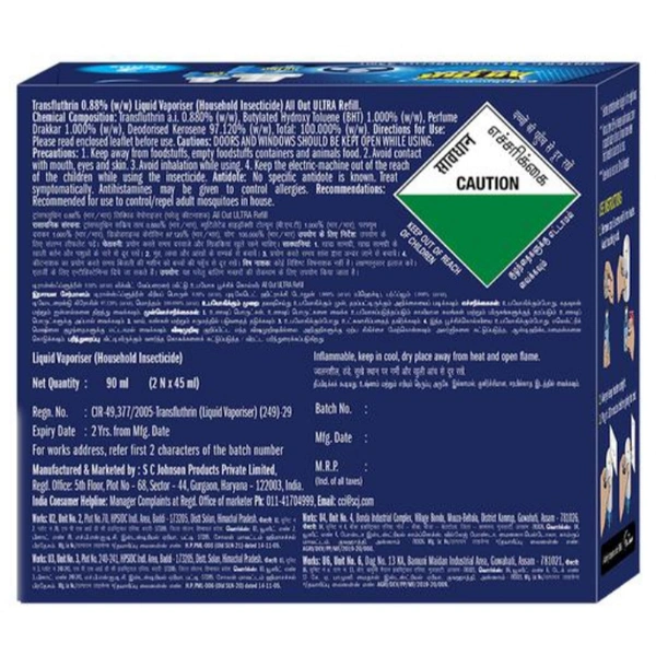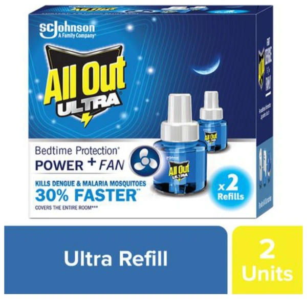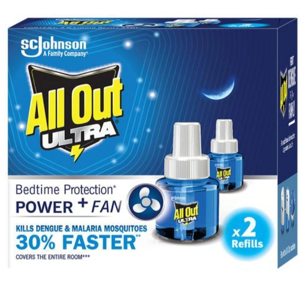 All Out Ultra Power + Liquid Electric FAN Refill is specially formulated to kill dengue and malaria mosquitoes. When used together with Power+ Fan machine mode, it provides powerful mosquito protection that kills them 30% faster. Its unique Power+ technology covers the entire room so your family can sleep through the night undisturbed. See the label for detailed precautions and usage directions.