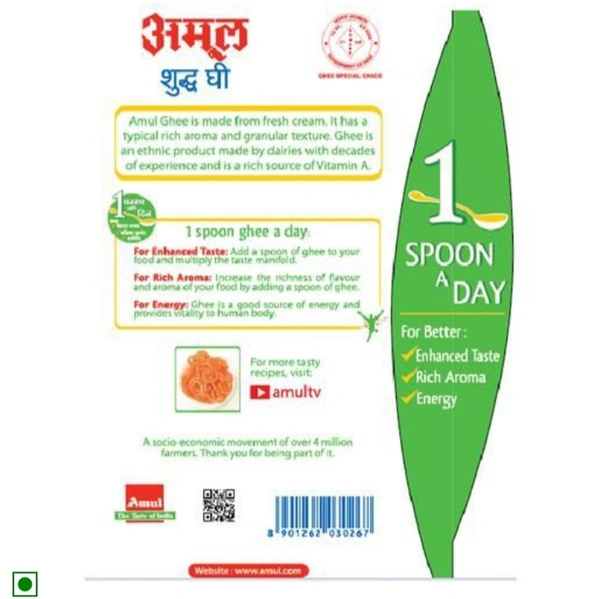 Ghee is clarified butter that is traditionally prepared from Buffalo's milk. Ghee is good source of energy and provides vitality to human body.