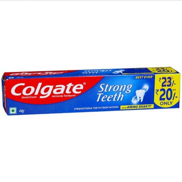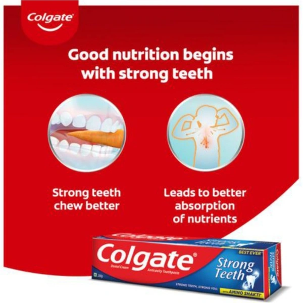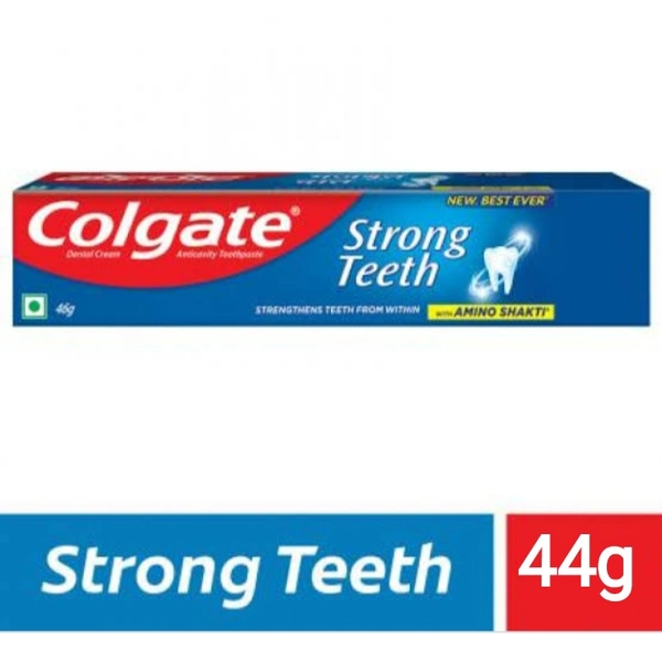 Your trusted Colgate Strong Teeth Toothpaste now comes with Amino Shakti, a unique formula containing Arginine with an insoluble source of calcium and fluoride. This new, best ever Colgate Strong Teeth formula (^vs previous formula), with Amino Shakti, provides 4X strengthening power by providing protection from a mineral loss against acid attack vs. an ordinary fluoride toothpaste.