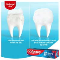 Calcium Carbonate, Sorbitol, Sodium Lauryl Sulphate, Silica, Titanium Dioxide, Titanium Dioxide, Sodium Silicate, Flavour Carrageenan, Sodium Monofluorophosphate, Sodium Bicarbonate, Benzyl Alcohol, Sodium Saccharin, Triclosan, In Aqueous Base.