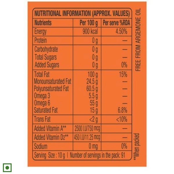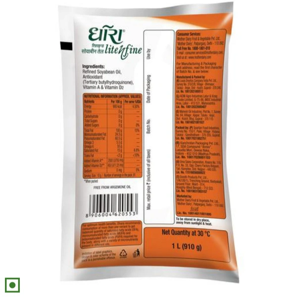 Soyabean Oil with Nutri-V 1 Litter Oil Pouch is famous edible / cooking oil in the Indian Kitchen. And it contains usual plant sterols that help in plummeting cholesterol. The usual taste of Soyabean oil improves the flavour of foodstuff, and works healthy with other elements as well as oils and fats, making it suitable for eating in salad dressings, baked foods and sauces.
