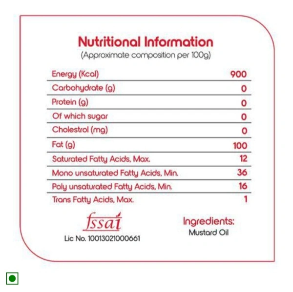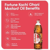 Fortune Premium Kachi Ghani Pure Mustard Oil, traditionally extracted from the first press of mustard seeds, comes with a high pungency level and strong aroma. Being pure, our cooking oil retains its natural properties and mustard oil benefits. Its strong aroma and pungency will spice up your cooking.