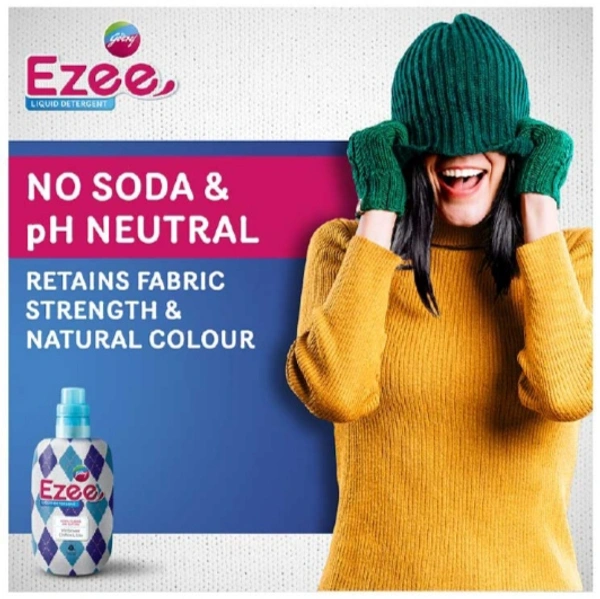 Approved by Woolmark Company for washing of woollen apparel. Ezee liquid detergent has a special ‘No Soda', pH neutral formula that gently cleanses your woollens from within. Its in-built micro conditioners make your woollens soft, fluffy and looking as good as new always!