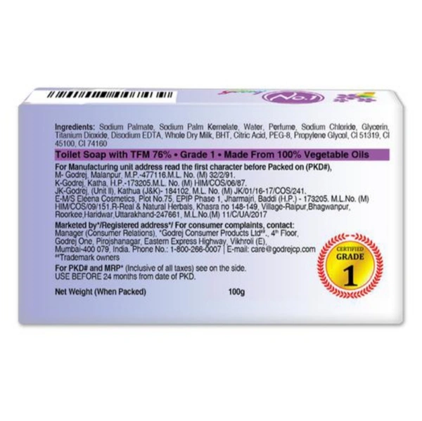 Godrej No.1 offers you 'nature's way to beauty' with carefully chosen natural ingredients to make your skin naturally beautiful. It is Grade 1 quality soap and the highest-selling soap of its kind in the country. Godrej No.1 Lavender and Milk Cream soap mesmerizing fragrance of Lavender and moisturizing milk cream combines with Natural Oils in this soap, to make your skin fresh and fragrant, and gentle to touch. It preserves the young nature of your skin giving you a perfect complexion. It protects your skin and gives you a youthful and young look.