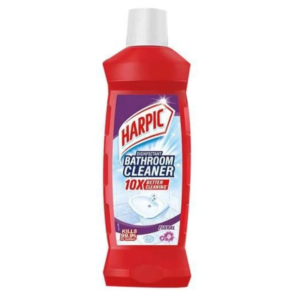 Harpic bathroom cleaner gives you unbeatable cleaning on greasy soil and particulate matter and Harpic freshness for the whole bathroom. Its thick liquid formula with powerful cleaning agents removes tough stains and kills 99.9 percent of germs. It also gives your bathroom a pleasant fresh fragrance. Used for regular cleaning of bathroom floor and tiles. Use 1.5 capfuls in half bucket of water.