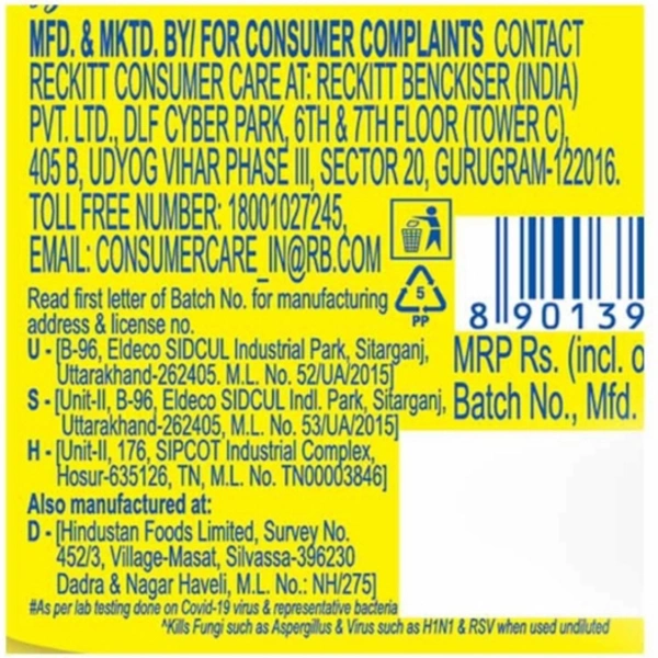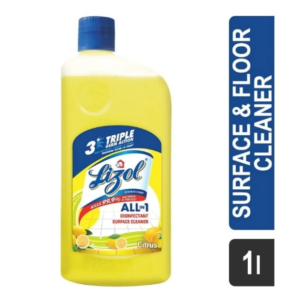 Lizol Disifectant Surface & Floor Cleaner Liquid Citrus 975 ml. Lizol is India's No.1 Household Cleaning Brand which is highly recommended by the Indian Medical Association. Lizol guarantees to kill 99.99% of disease-causing bacteria as well as germs while leaving your room smelling fragrant with a wide variety of mesmerising aromas.