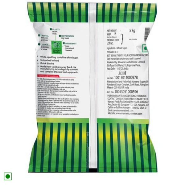 Mawana Premium Crystal Sugar is SULPHUR-FREE whitest refined sugar conforming to EEC Grade I standards. It is produced in a word class germ-free facility, with no Harmful chemicals used, completely untouched by hand and is hygenicaly packed in a Dust-free environment.