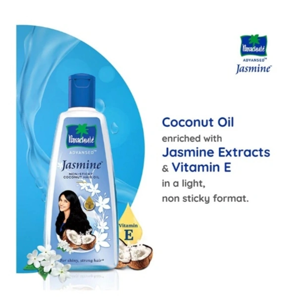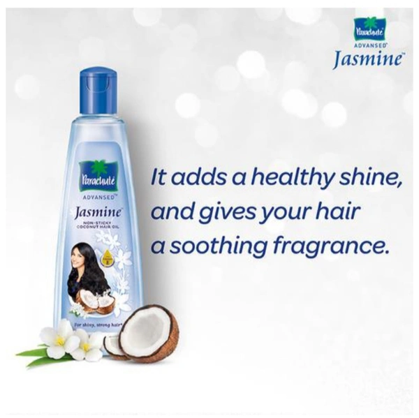 Parachute Advansed Jasmine coconut hair oil gives your hair the strength and nourishment it needs. This non-sticky hair oil comes with the fragrance of jasmine for a soothing, pleasant experience and Vitamin E improves your scalp and hair health. It leaves your hair soft, silky and shiny.