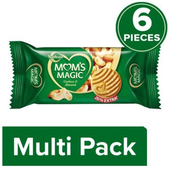 Mom's Magic Cashew Almond Cookies - Just the way Mom would make it. Nutty cookies, Mom's Magic are loaded with choicest cashews and almonds which are roasted to perfection for a rich, full-bodied taste. Complemented with roasted Butter that has mildly sweet caramel notes, which give a unique flavour and rich smoothness to Mom's Magic Biscuits. A perfect tea time snack, these cookies are your 4 pm companion for when you want a bite of sweet nuttiness that envelops your senses just like a mom's hug. Enjoy these baked biscuits and step into a world abundant with warmth, heartfelt hugs and mom's magical taste.