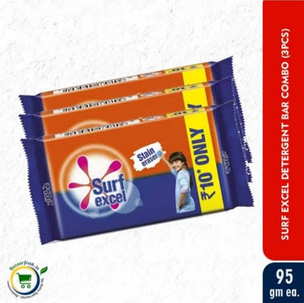Surf excel detergent bar is Indias most premium detergent bar and is developed with a unique patented technology. Surf excel bar combines the power of 4 products - vinegar, blue, bleach and lemon into just 1 product, thereby helping you fight and remove tough stains easily that help you save time, money and effort you put behind laundry. With just one product, Surf Excel Bar, you can easily remove tough stains like tea, coffee, turmeric, curry, ketchup and chocolate.