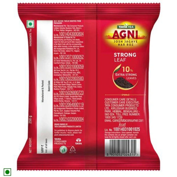 Tata Tea Agni is a superior blend of Assam tea along with 10% extra-long leaves to give you a strong taste. This contains granules form of the tea which makes it easy to mix with water. The great taste makes it a favourite among many. The packing is made airtight to keep it safe from outside moisture and temparature.