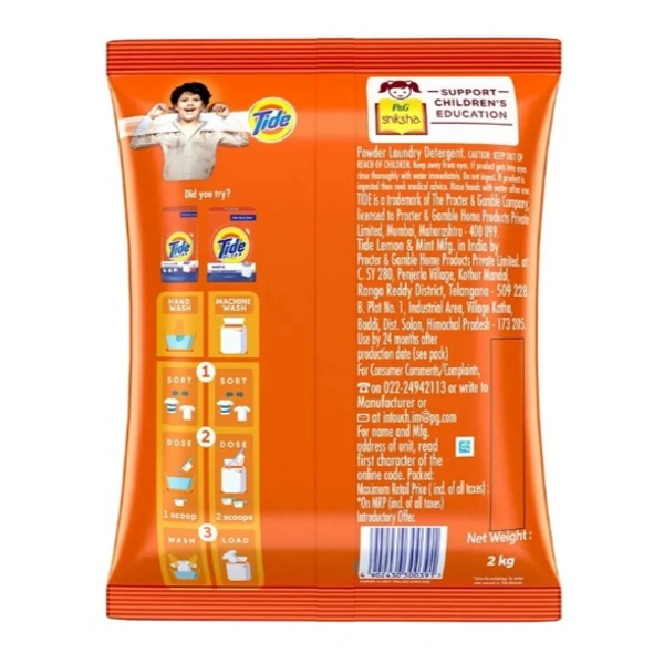 Chhodo Aadha White, Chuno Full-on White. Superior Whiteness - Tide Plus gives you Full-On Whiteness. Half the effort - Need only half the effort vs. ordinary detergents.